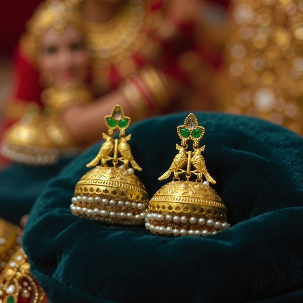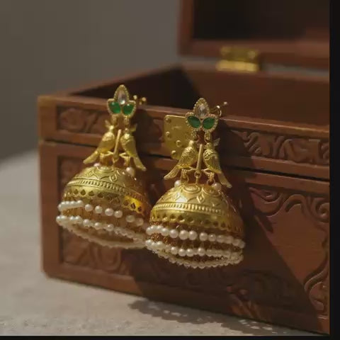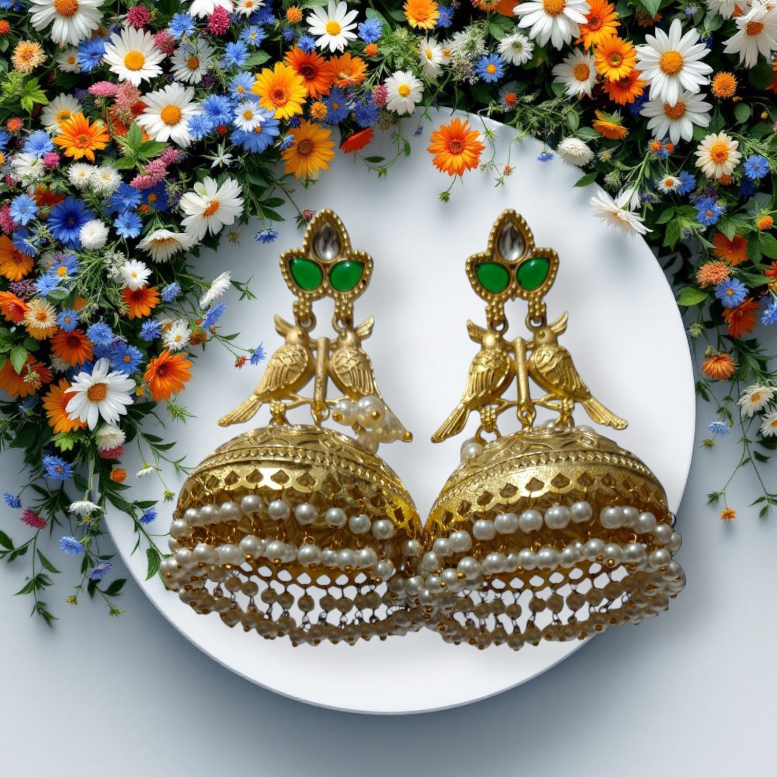 Add regal elegance to your look with these stunning Golden Kashmiri Jhumke. Crafted with intricate detailing and a classic dome-shaped design, these earrings reflect the rich heritage of Kashmir while giving you a radiant golden glow.